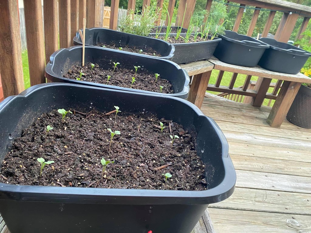 In choosing what vegetable to grow in these, you have to think about how the roots of the plants spread. Shallow rooting plants, which are mostly leafy vegetables, can be planted in the a dishplan planter. You can think of it as a square foot garden and space your plants out according to it’s maturity size.