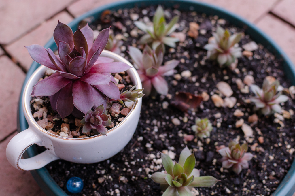 4. Transplant each and leave an inch or two around each succulent offset to make room for future growth.