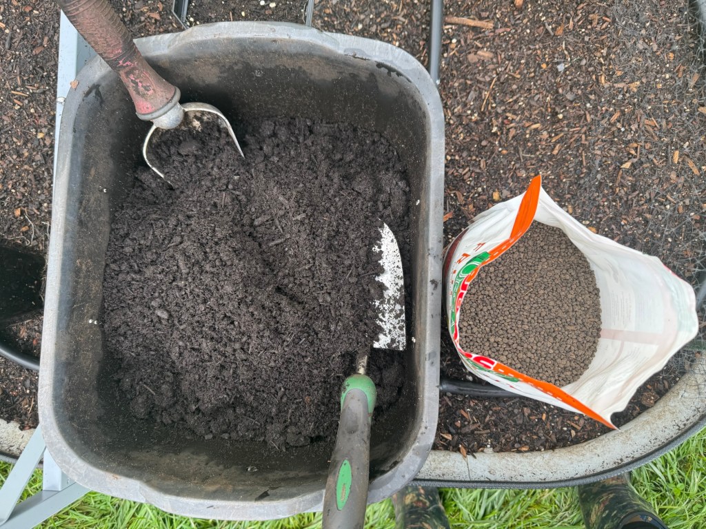 Tomatoes are heavy feeders that thrive in rich, well-draining soil. Whether you’re planting in a raised bed or container, amend your soil with compost, worm castings, and a slow-release fertilizer. I prefer blends that are higher in potassium and phosphorus.