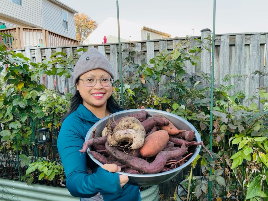 Sweet potatoes were one of the first crops I experimented with early in my gardening journey. I was inspired by the vegetables I grew up eating back in the Philippines. Although sweet potatoes weren’t my favorite growing up, I wanted to challenge myself—to see if I could grow something familiar in a completely different environment.