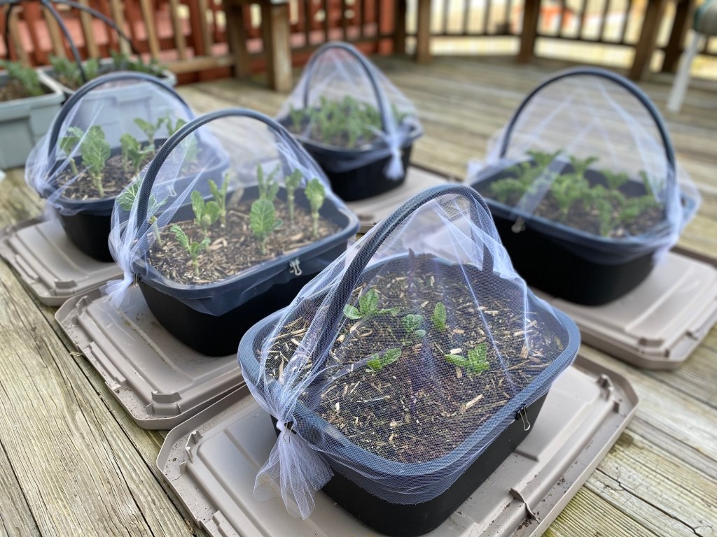 - Cabbage worms and loopers: These little green caterpillars will chew holes in your leaves. I handpick them when I see them or cover young plants with floating row covers or netting.