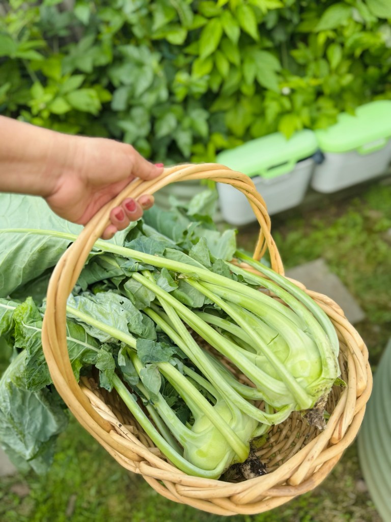 In one of my 2.5×9 beds, I could have grown up to 16 kohlrabi, but I mixed in other crops and only planted 6. I try to be realistic about what we’ll eat. And when a few of them bolted due to unexpected heat, I didn’t panic—I just harvested the leaves and cooked them like kale. Nothing goes to waste in this garden.